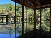 初夏はもみじが陽光に映え、一面に生える苔とともに緑の世界をつくり